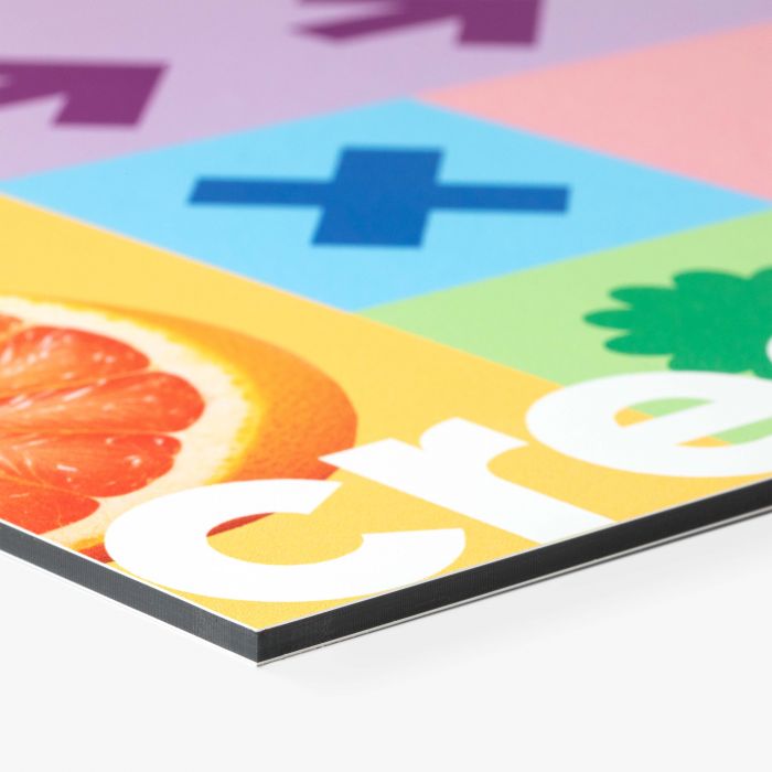 Dibond XL is een extra groot formaat aluminium sandwichpaneel dat dezelfde vormvastheid en duurzaamheid biedt als standaard Dibond, maar dan op schaal voor grotere toepassingen. Dankzij de gladde toplaag komt jouw full-color print scherp en helder naar voren. Door het lichte gewicht en de weerbestendige eigenschappen is Dibond XL uitstekend geschikt voor toepassingen zoals gevelborden, buitenreclame, outdoor-signage of zichtbare reclame op grotere formaten.