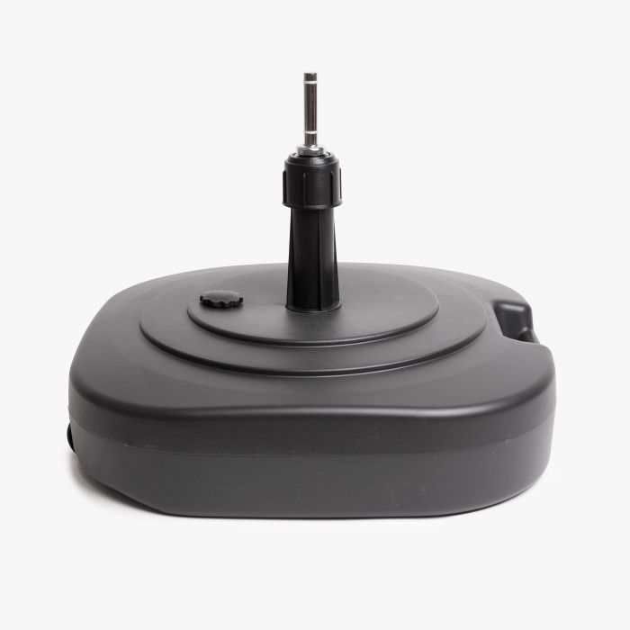 De Parasolvoet is de ideale basis om jouw parasol of beachflag stabiel te plaatsen. Dankzij de ingebouwde wieltjes verplaats je de voet eenvoudig, zodat je schaduw of reclame precies daar kunt neerzetten waar je hem nodig hebt. Vul de voet met water of zand voor extra gewicht en stabiliteit, waardoor hij stevig blijft staan bij wind of op oneffen ondergrond. De parasolvoet is solide en robuust, zodat je parasols en vlaggen op hun plek blijven, ook bij langdurig gebruik.